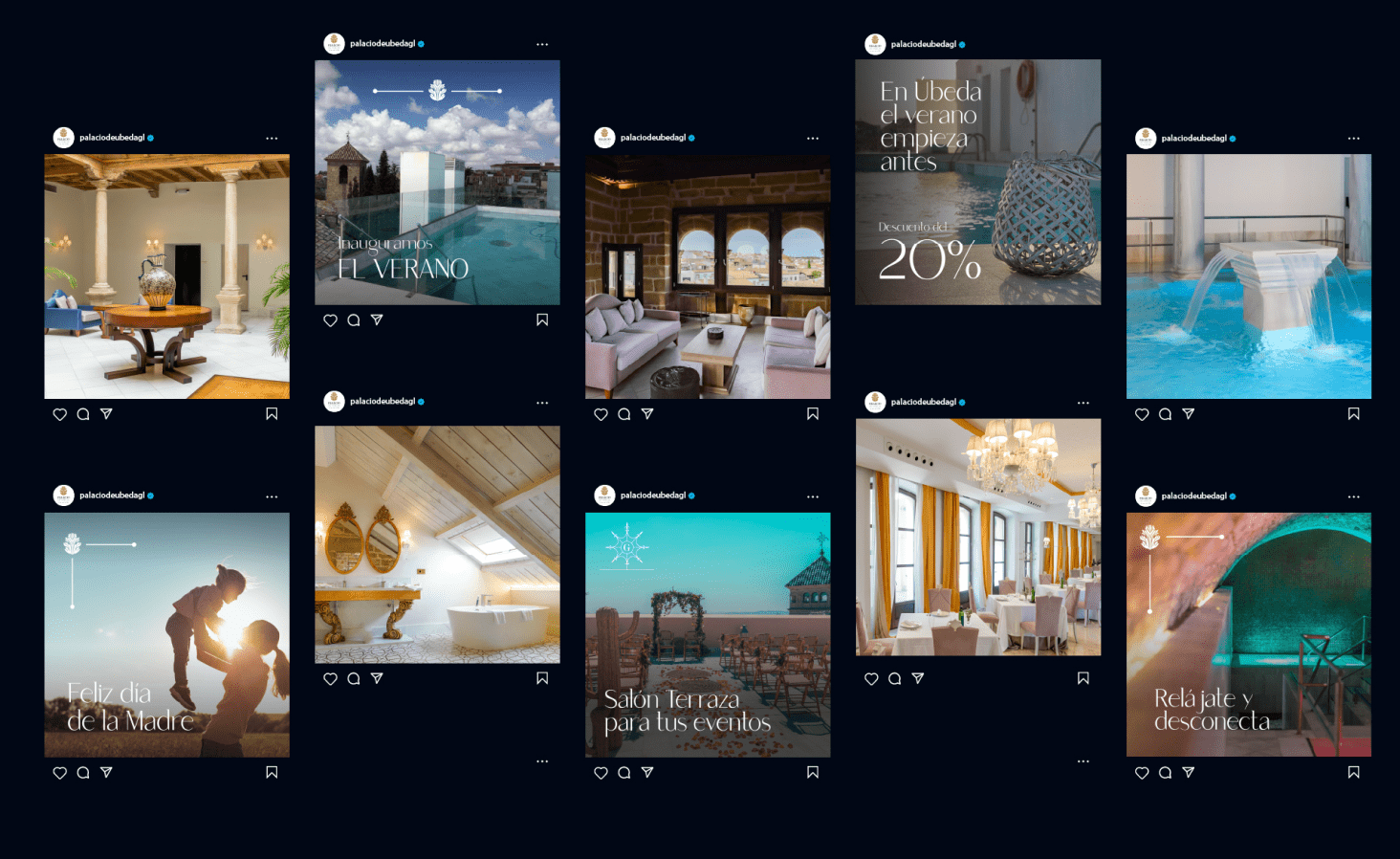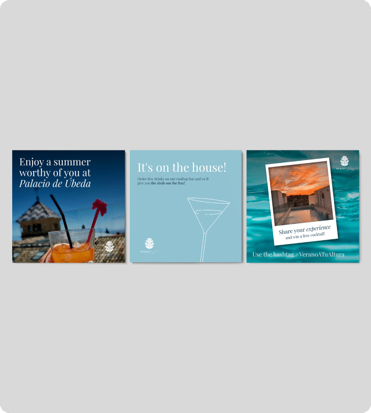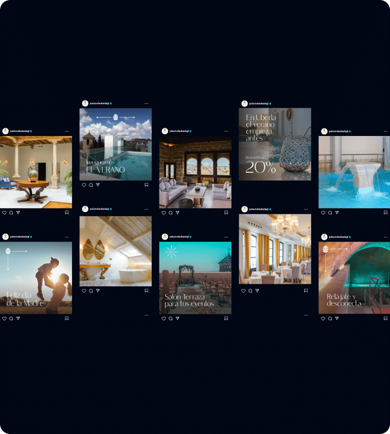 Unificar los negocios: Thermas Renacentistas, Restaurante Ábside, Taberna Guadiana bajo el paraguas de Hotel Palacio de Úbeda 5*GL mediante una estrategia 360 a través de redes sociales, inversión publicitaria, branding y sesiones fotográficas.